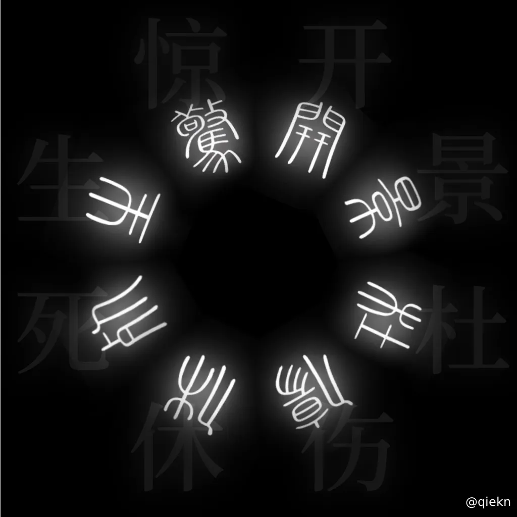 开门、 景门、 杜门、 休门、 伤门、 生门、 死门、 惊门